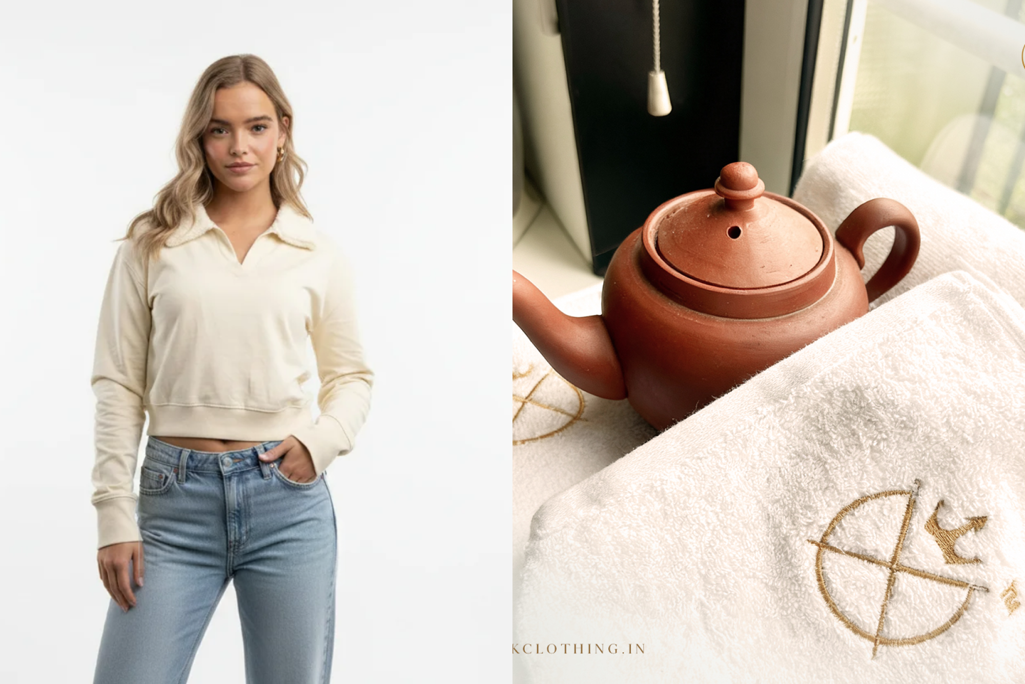 FUR NECK CROPPED POLO SWEATSHIRT